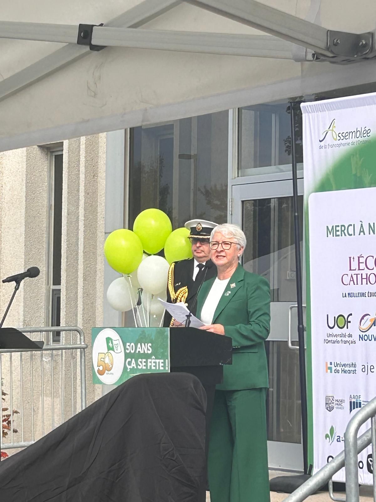 « Depuis 50 ans, le drapeau franco-ontarien incarne la fierté, la résilience et la richesse culturelle de la communauté francophone de l’Ontario — la plus grande au Canada en dehors du Québec, a souligné Caroline Mulroney, ministre des Affaires francophones. Cet anniversaire est l’occasion de célébrer le développement social, culturel et économique des francophones en Ontario et leurs contributions inestimables à la province. »