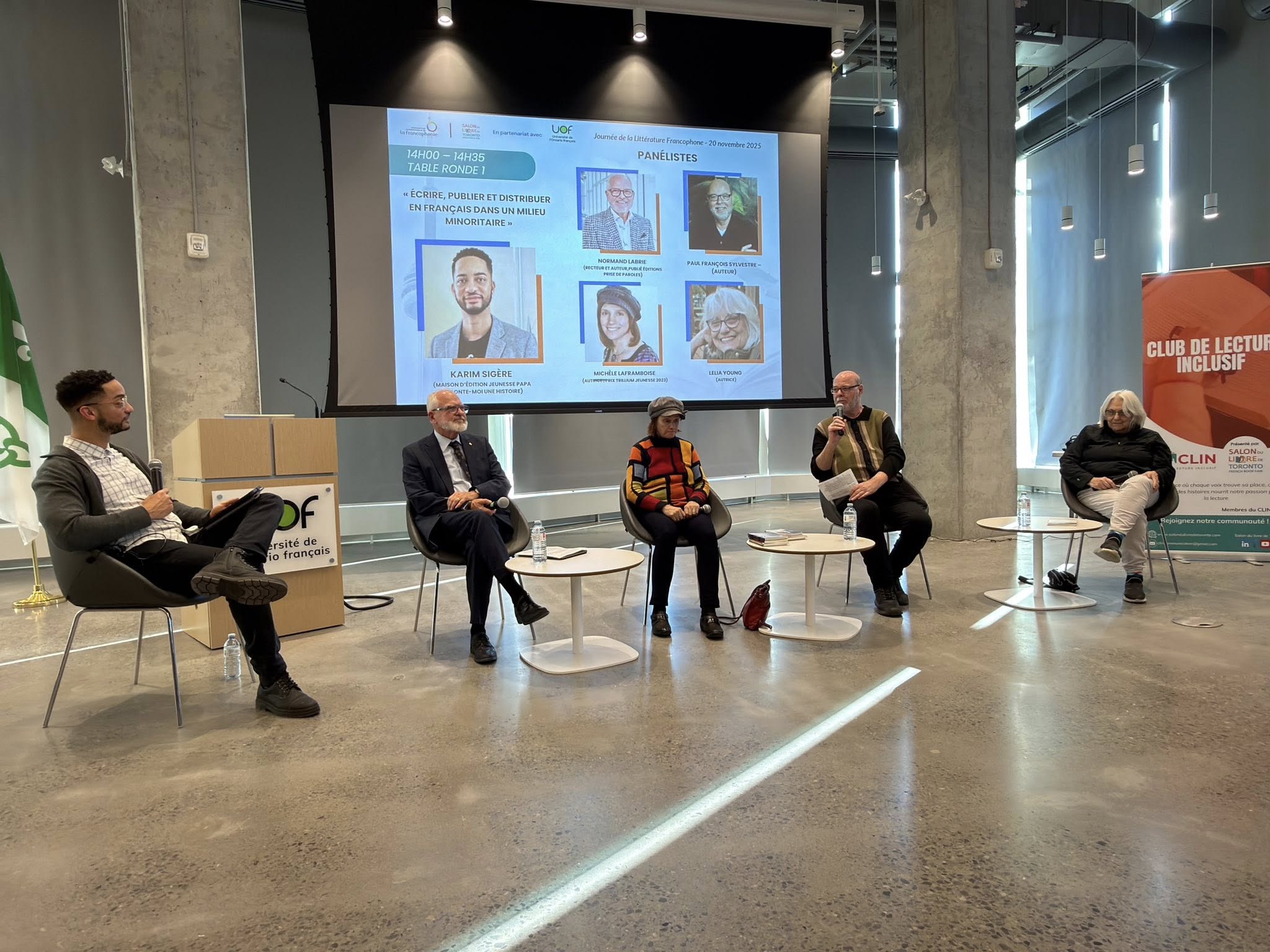 Puis, plusieurs discussions animées par des experts du milieu littéraire ont porté sur des sujets tels que la création et la diffusion de la littérature francophone dans un contexte minoritaire et la circulation des œuvres au-delà des frontières. Des figures emblématiques de la littérature franco-ontarienne, dont Paul-François Sylvestre et Normand Labrie, ont échangé sur ces enjeux, partageant leur expérience et leur vision de l’avenir de la littérature en français.